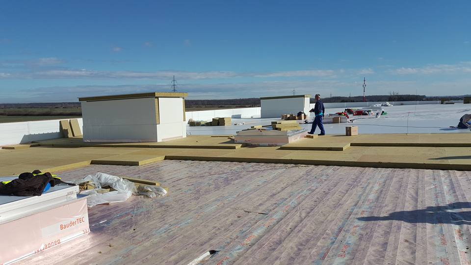 1600 m2 sédtetők tűzfal részénél oldalfal hőszigetelését szendvicspanellel.
